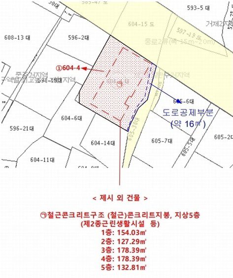 핵심 포인트: 토지 1,494㎡(약 452평)만 매각 대상이었으며, 지상에는 매각에서 제외된 ‘근린상가 및 공동주택’ 건물이 존재했습니다.