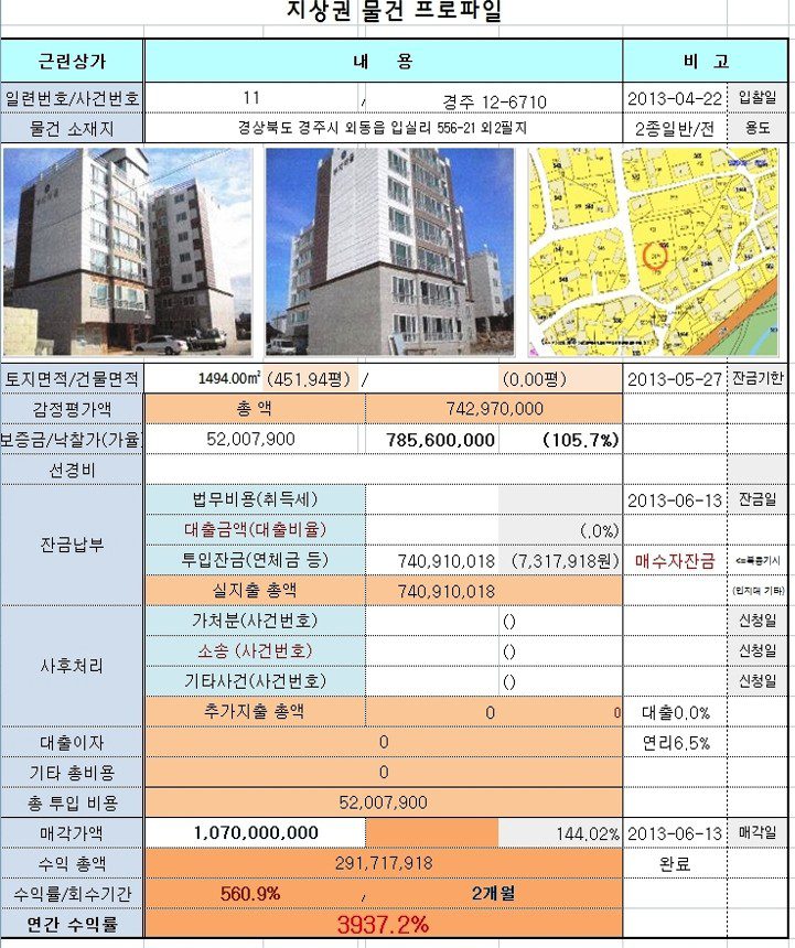 철저한 법리 해석 후 공격적으로 입찰한 결과, 단 2개월 만에 경이로운 수익을 기록했습니다.